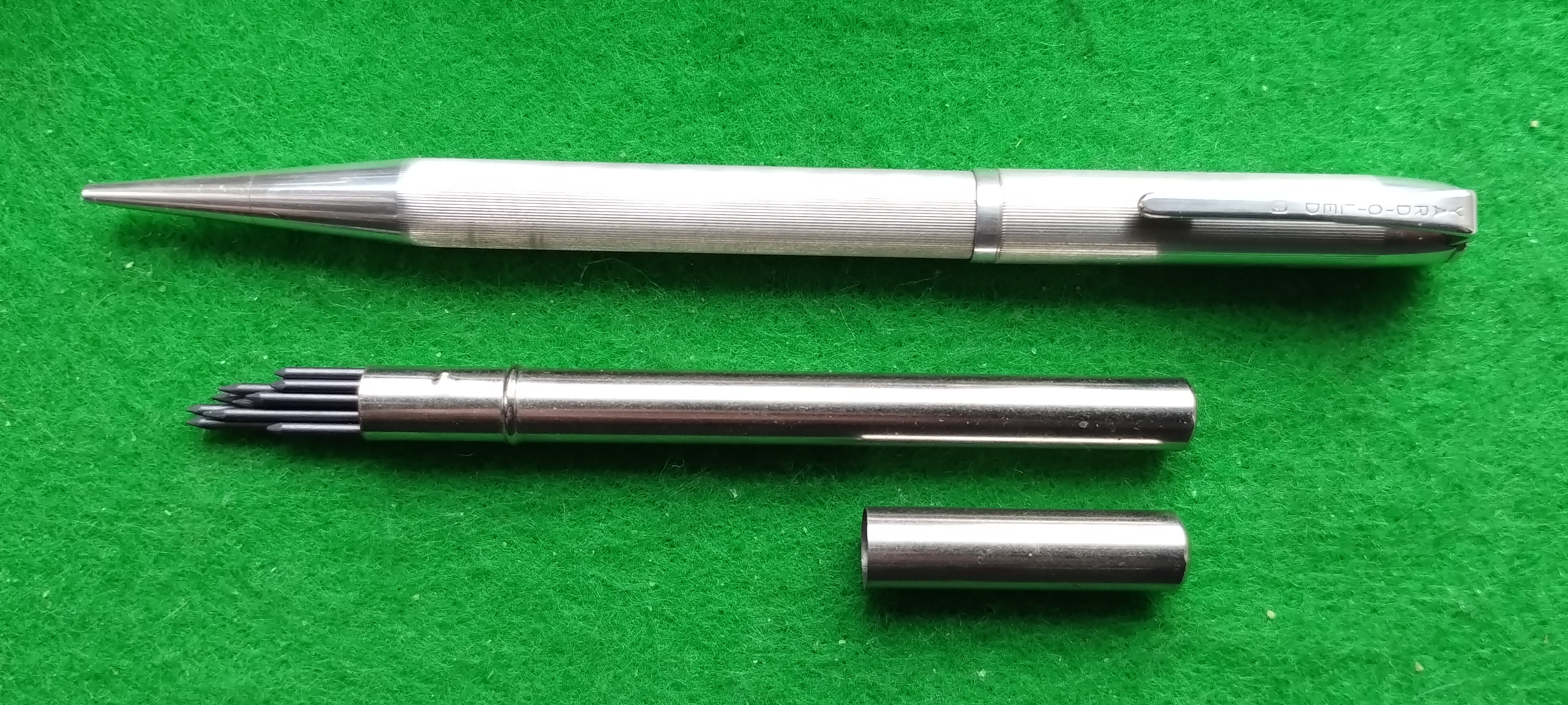 Plain shaft with engraved pocket clip with a small piece of lead but no clip to hold the lead, 4" long.